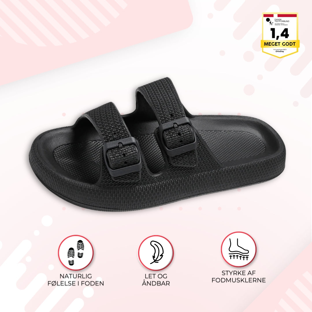 - Sundhed: Hjælper med at afbalancere og justere din fodstilling, hvilket reducerer risikoen for fodproblemer. Læs mere om vores ortopædiske hjemmesko her.