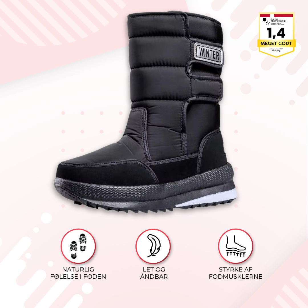 - Skridsikre såler: Sørger for et stabilt greb på glatte eller snebelagte overflader. Se vores skridsikre vinterstøvler her.